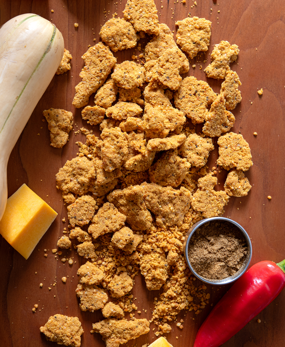 - Curried Squash Bark – Butternut squash and pumpkin powder with warming spices create subtly sweet, lightly spiced notes, colored with EXBERRY® Shade Brilliant Orange.